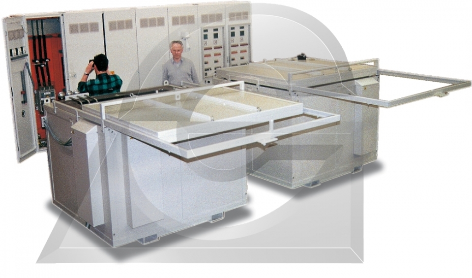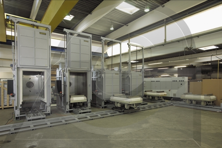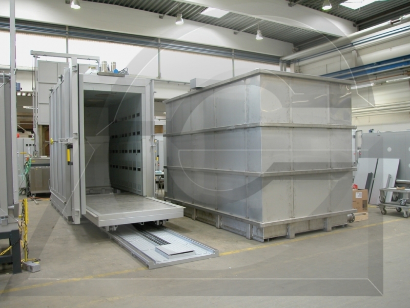 Fornos, caixas de absorção de gás, sistemas de endurecimento, banhos de resfriamento brusco, placas de carga, alicates, luvas, cestas de carregamento, demais acessórios.